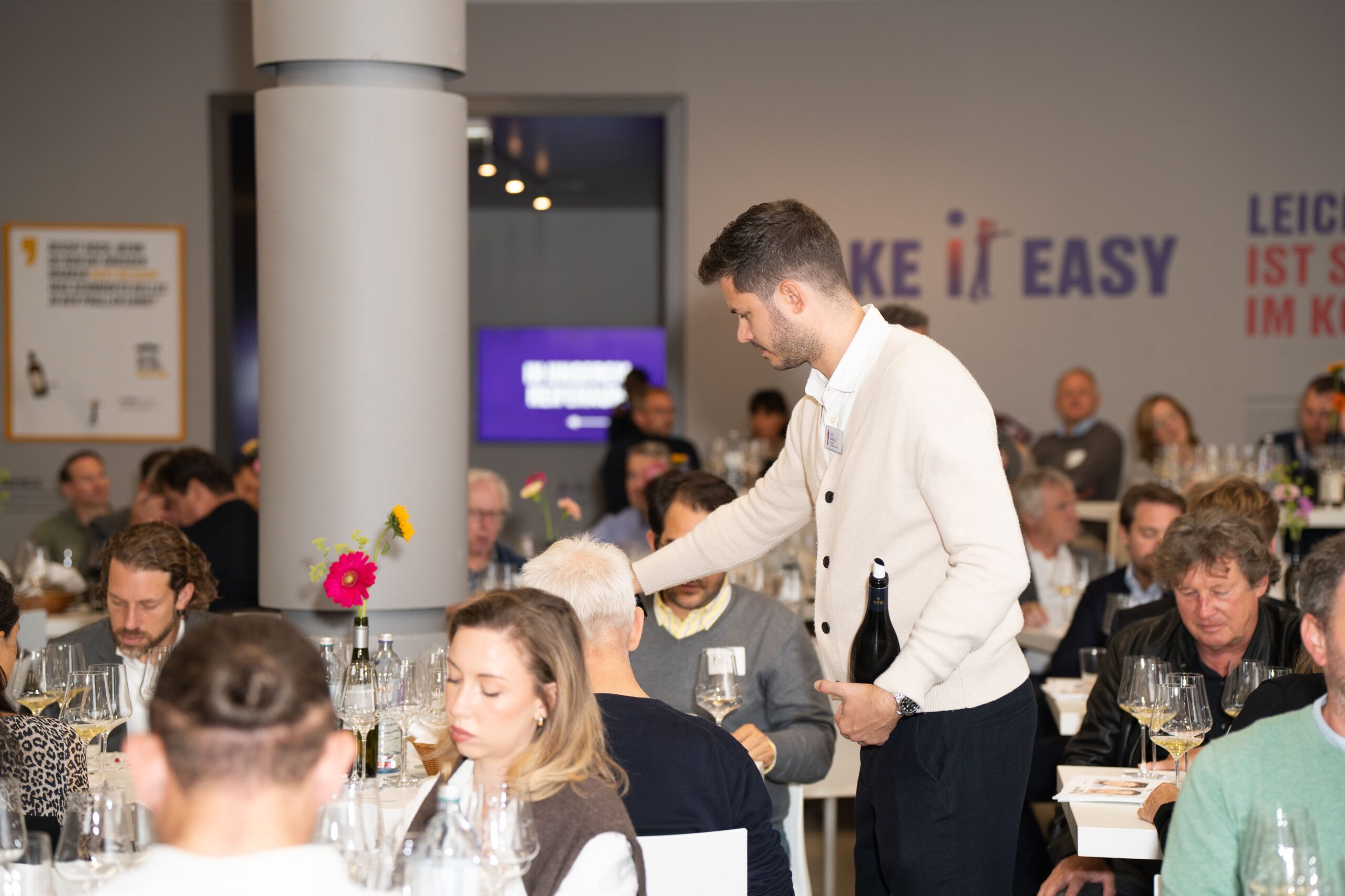 Die exklusive Verkostung am 29. September bot einen tiefen Einblick: In vier Flights wurden 14 ausgewählte Weine präsentiert, gefolgt von einer freien Verkostung mit weiteren 75 Positionen. Darunter klingende Namen wie Sabathi, Gesellmann, Lucas Pichler, Andreas Kollwentz, Fred Loimer, Bründlmayer, Salomon und Markowitsch.